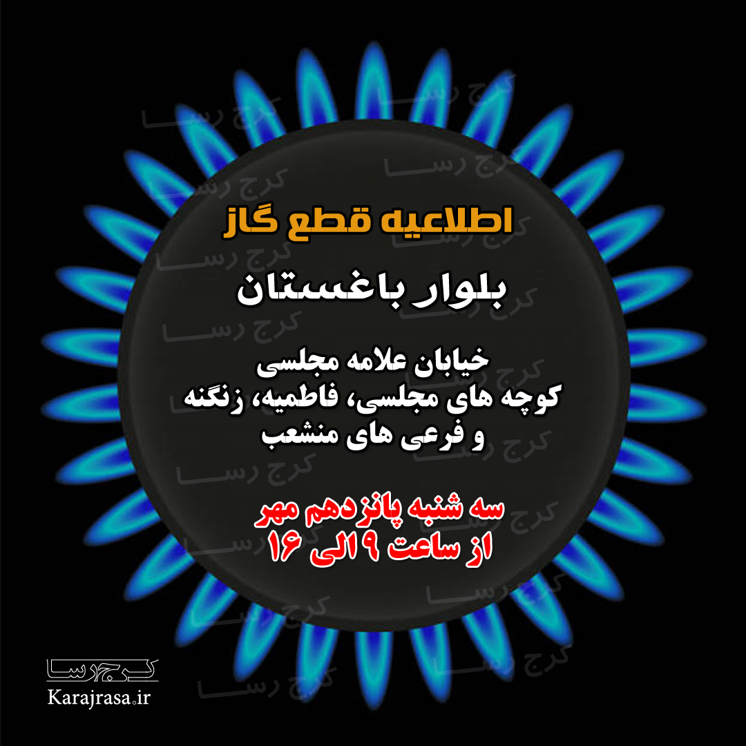 روابط عمومی شرکت گاز استان البرز اعلام کرد؛ این محدوده ها در بلوار باغستان روز سه شنبه با قطع گار مواجه خواهند شد.